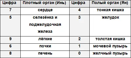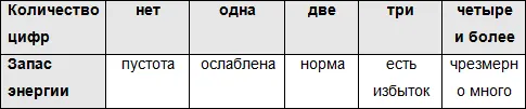 Составим таблицу соответствия между количеством цифр и силой энергии органа.