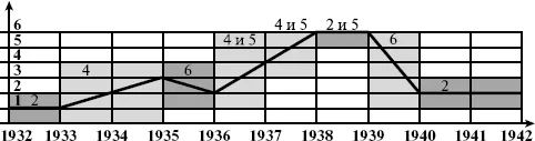 Построим график по дате рождения Сталина для периода с 1932 по 1942 год.