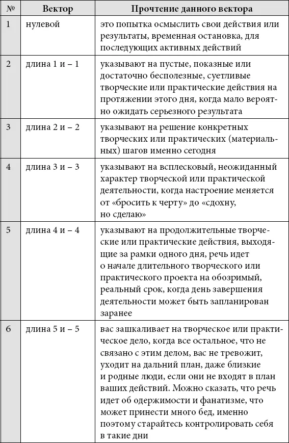 Построим вектор развития данного дня, используя правило и таблицу, которую мы специально введем, для удобства построения векторов развития по любым датам.