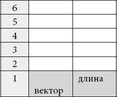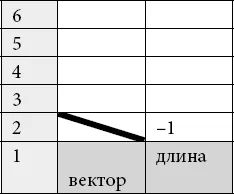 В нашем случае длина вектора развития равна: 1–2 = –1. Мы имеем отрицательный единичный вектор, который будет изображен в таблице векторов развития следующим образом.