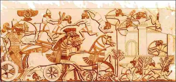 Дербентский проход устремились на территорию нынешнего Азербайджана, где обосновались, включив, вероятно, в свой состав значительные группы местного скотоводческого населения и совершая походы в различные части передней Азии). В 679 г. до н. э. он сразился с киммерийскими отрядами, но это не привело к восстановлению власти в бывших северных территориях Ассирии. Царь Тира Баал, заключивший договор с Ассирией, перешел на сторону Тахарки – эфиопского фараона Египта. Из-за этого начинается длительная серия войн Ассирии с Египтом. В 676 г. до н. э. ассирийское войско совершило бесполезный поход в Южную Аравию, не рассчитав силы и расстояние. В 675–672 г.г. до н. э. – война с Египтом. В 673–672 г.г. до н. э. Ассирия покоряет полунезависимую горную Шубрию, захватив беглых рабов, бежавших туда из Ассирии и вернув беглых рабов из Урарту царю Урарту. Восстали мидяне и другие союзничающие со скифами племена на восточных окраинах державы; три восточные области отпали от Ассирии, образовалось царство Мидия. В 671 г. до н. э. Ассирия захватывает египетский Мемфис и закрепляется в Нижнем Египте. Египетские власти оставлены на своих местах под подчинением небольшому гарнизону ассирийских «надзирателей». На Египет наложили ежегодную дань в 180 кг золота и 9 т серебра. При сыне Асахарддона – Ашшурбанапале Тахарки снова попытался овладеть Египтом, но ассирийцы не только отбросили его, но и прошли далеко вверх по долине Нила и разграбили древнюю столицу Египта Фивы.