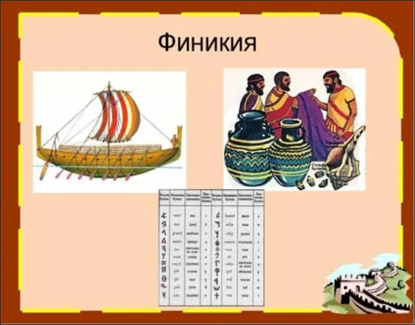 Одним из главных достижений финикийской культуры было создание алфавита, который лег в основу европейских. Его прототипом было так называемое синайское письмо. Оно возникло среди семитов, тесно связанных с Египтом (быть может, гиксосов), и исходило сначала из иероглифов.