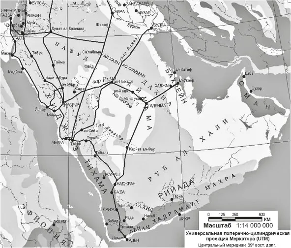 Отдельные кланы повышали уровень жизни, захватывая не только выращивающие финики и бедные урожаи зерновых оазисы, но и местные рынки, представлявшие собой центры обмена, где процветало примитивное ремесло. Эти места мирных встреч, которые иногда были центрами крупных ярмарок, чаще всего совпадали с перевалочными пунктами и торговыми этапами караванных путей, которые пересекали в то время полуостров, следуя, в частности, по его западному побережью, «барьеру» Хиджаза, и по которым транспортировались пряности и благовония в крупные точки севера. Эти перевозки некогда обеспечивали благосостояние ряда очагов оседлого населения древних минейских, лихианских и тамудейских городов севера и того набатейского царства Петры, чье население арабского происхождения на заре христианской эры активно смешивалось с оседлым арамеизированным окружением, не отказываясь при этом от своего призвания торговцев-кочевников. Те же экономические причины впоследствии содействовали, с одной стороны, подъему северных арабских государств, возникавших, собственно говоря, за пределами Аравийского полуострова, таких как царство Лахмидов, Хиры (с IV в.) или царство Гассанидов (около VI в.), которые использовались византийскими правителями, чтобы поддерживать порядок в сиро-месопотамской пустыне и обеспечивать с этой стороны прикрытие аванпостов старинной римской границы.