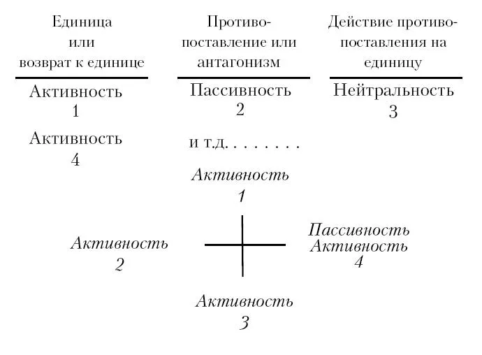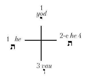 Последовательность чисел 1, 2, 3 и 4, представляющая активный, пассивный, нейтральный и второй активный принцип, по всем пунктам соответствует ряду букв Священного Имени, так что последнее можно записать как —
