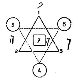 Следовательно, 4, означающая Yod, действует по отношению к 5 и 6 также, как и 1 по отношению к 2 и 3, и мы получаем еще одну тройку: