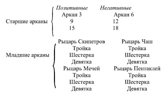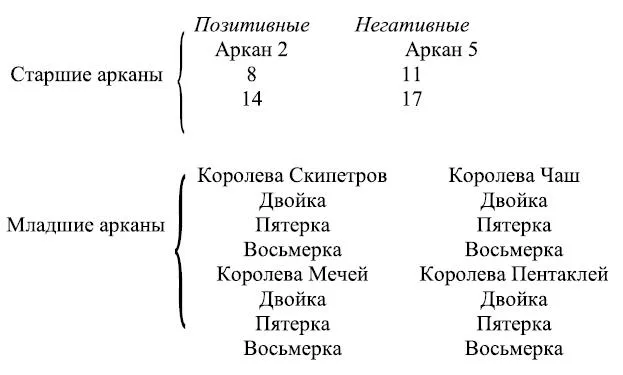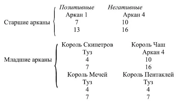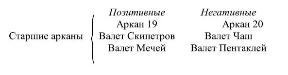 То же правило применяется и к другим элементам, в комбинировании знака, прикрепленного к большому аркану с тем, который прикреплен к рассматриваемому элементу.