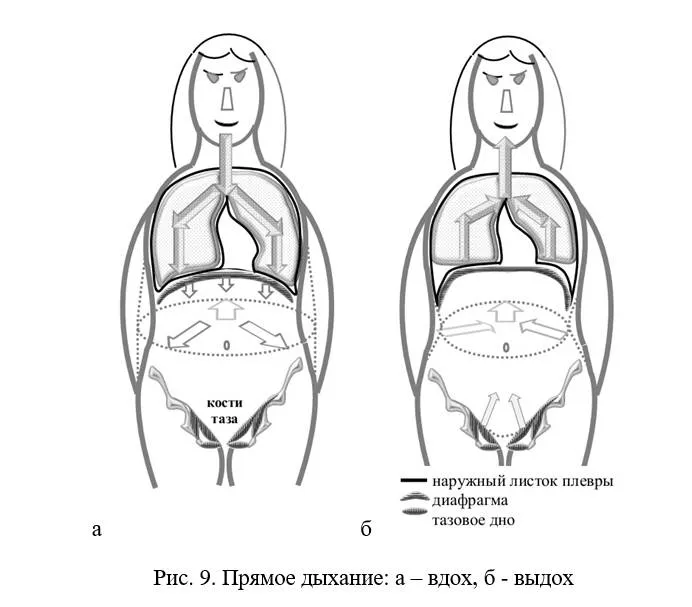 Диафрагма принимает участие в дыхании. При вдохе грудная клетка расширяется, и увеличиваются в размерах боковые карманы (плевральные синусы), образованные наружным листком плевры, в которые и устремляются расправляющиеся легкие.