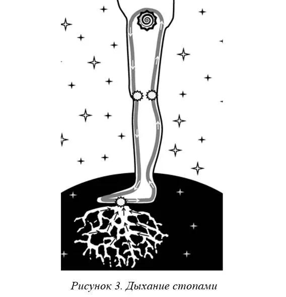 Работа с энергией Земли помогает заземлиться: стать более сильными в физическом и эмоциональном плане, обрести свой собственный центр. Изначально вы можете использовать воображение, чтобы почувствовать ци, поднимающуюся или опускающуюся по ногам. Итак, предлагаю выполнить упражнение «Дыхания стопами» (рисунок 3).