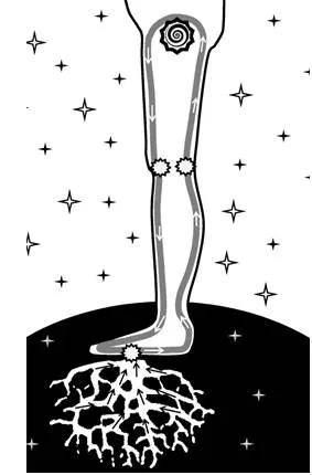На вдохе поднимайте энергию Земли по задней поверхности ног до промежности.