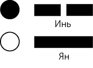 Обычно Инь изображается черным цветом или, как в Ицзине, прерывистой чертой. Ян – это белый цвет или сплошная черта (см. рисунок 1.7).