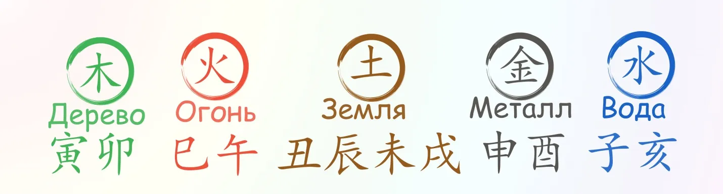 В Небе взаимодействия этих стихий называют «Небесными стволами» и каждую из них дополнительно разделяют по иньско-янскому принципу, поэтому их не пять, а десять.