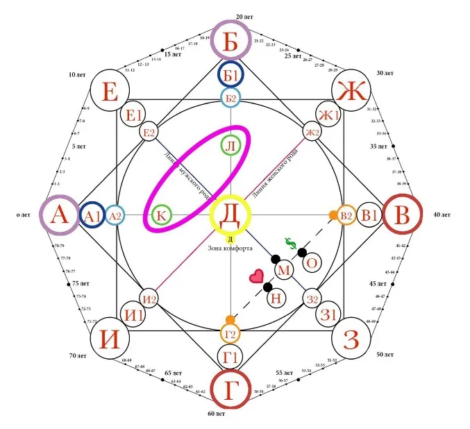 Точка Л – чувства и эмоции, связанные с духовным миром (вибрации высшего порядка – любовь, счастье, радость, эмпатия и т.д.)