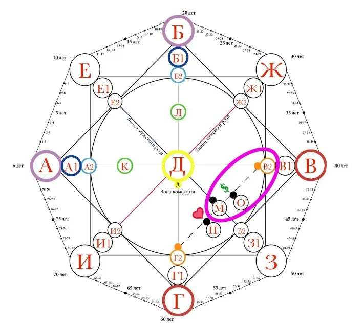 Эта зона матрицы расскажет о том, в каких сферах ребенок сможет финансово реализоваться, иметь достойный доход, позволяющий закрывать не только базовые потребности, но и на развлечения, удовольствие, обеспечение своей семьи.