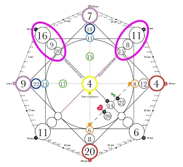 Эти точки показывают какие таланты, навыки, знания и опыт переданы ребенку от родов отца и матери.