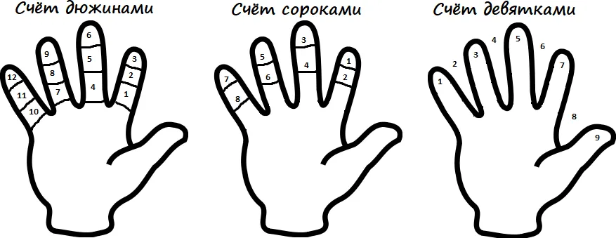 Что это даёт? Мы видим, что система на основе девятки, связана с системой на основе пятерки. На пальцах большой палец связан с мизинцем, безымянный – с указательным. Промежуток между мизинцем и безымянным связан с промежутком между большим и указательным. Промежуток между средним и безымянным связан с промежутком между средним и указательным. А вот средний остался без пары, сам собой, как пятёрка.