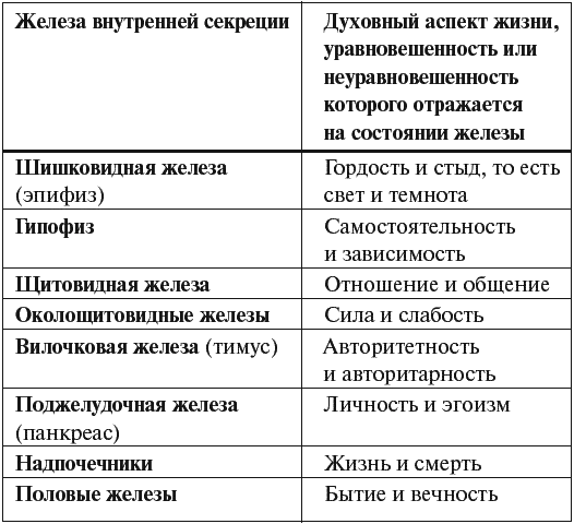 Железа внутренней секреции Духовный аспект жизни, уравновешенность или неуравновешенность которого отражается на состоянии железы
