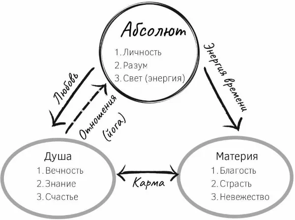 Когда же душа меняет свою истинную функцию и направляет полученную свыше энергию служения и любви не на Бога, а на внешнюю материальную энергию, она совершает первородный грех. Так душа опутывает себя энергией кармы и обрастает внешним физическим телом и разными вещами как раковой опухолью.