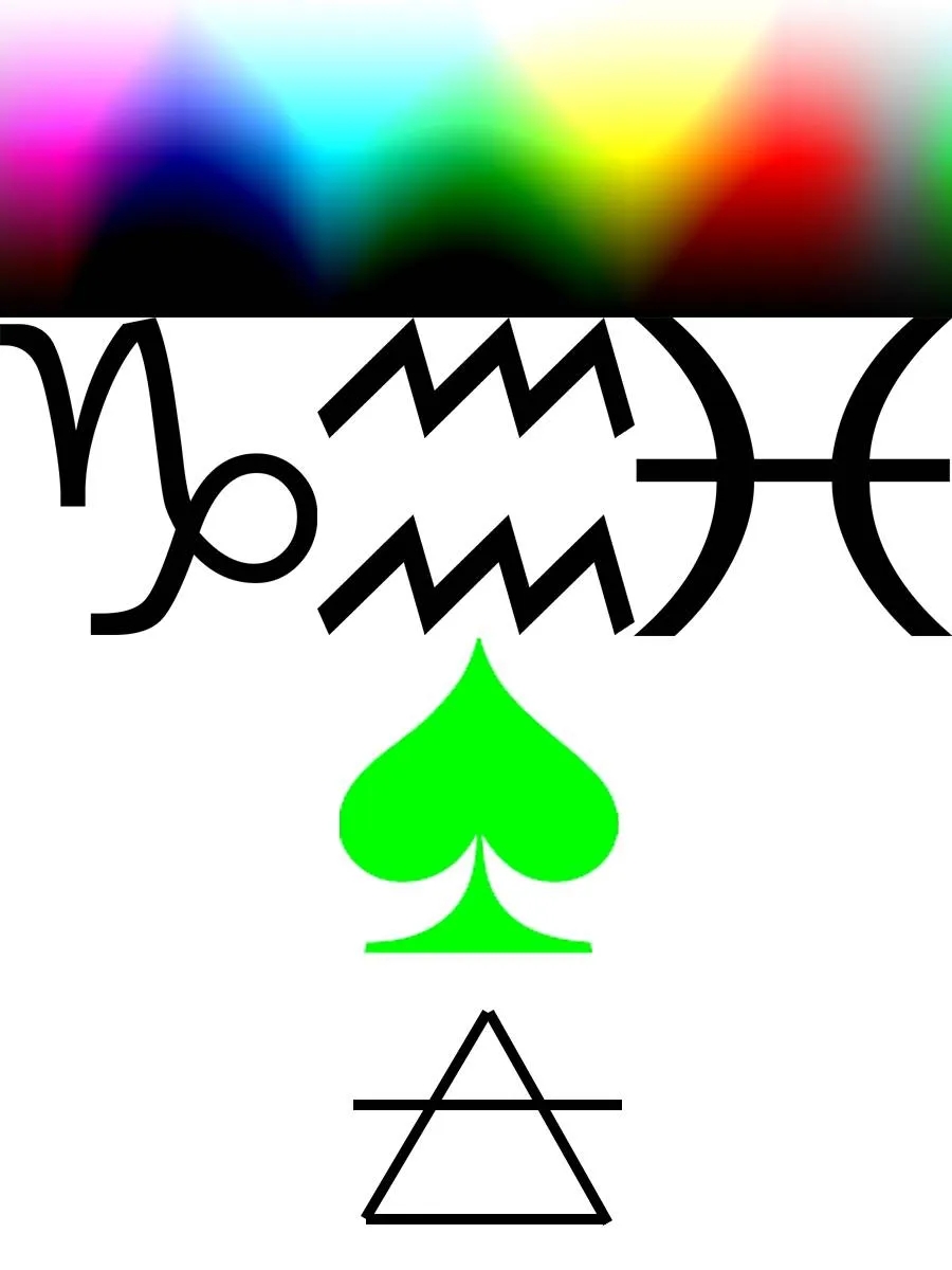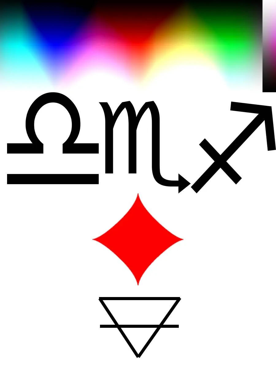 Масти игральных карт соответствуют стихиям в знаках их формирования, собственно, знаки стихий означают то же. Скорее всего, красный цвет червей и бубен – это результат выцветания или просто неразличения пурпурного и красного. Черный цвет треф и пик – это очевидно выцветание краски – голубой и зелёной, а далее по традиции их уже сразу изображали чёрными. Буквы же: K, Q, J – это буквы Воздуха в воздушных знаках, в соответствии с их весом, хотя это может быть совпадением.