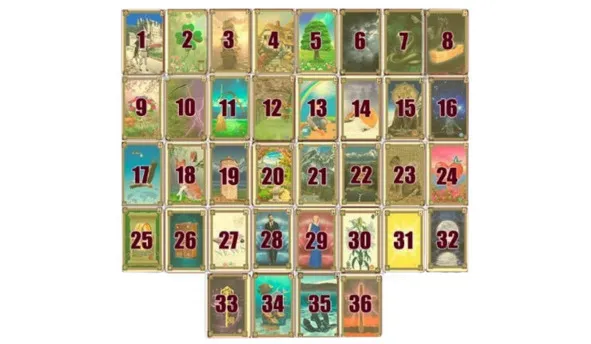 Прежде чем приступить к изучению значений Домов, сначала необходимо хорошо себе представлять, что такое Дом и для чего он предназначен. Эта техника применяется только в Большом раскладе Ленорман и преимущественно при классической форме его выкладки 8х5. Разумеется, что никто не запрещает использовать выкладку 9х5, однако я рекомендую работать с классическим вариантом. Техника толкования основана на устоявшемся представлении того, что каждая карта колоды имеет собственное место в Большом раскладе, соответствующее её числовому номеру. Несложно догадаться, что, имея в колоде 36 карт, мы получаем 36 таких мест (рис.1), называемых Домами.