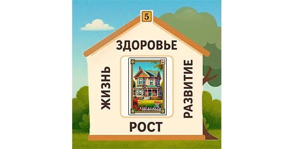 Карта Дом в Доме здоровья и роста показывает, что отношения строятся на основе стабильности, доверия и чувства безопасности. Здесь важен уют, предсказуемость и желание «пустить корни». Взаимосвязи получают развитие не через бурные страсти, а через постепенное укрепление, совместный быт и создание надёжного фундамента.