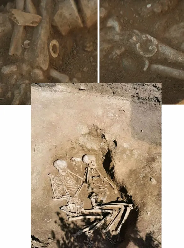 «На лбу одного из взрослых найдено кольцо диаметром около 4—5 сантиметров – украшение, также у этого же человека оказались на запястьях браслеты из маленьких колечек. Такие колечки – они соединяли либо каким-то текстильным или кожаным ремешком. Браслеты выполнены из ракушки. Больше находок никаких нет, – отметила научный сотрудник Института монголоведения буддологии и тибетологии СО РАН Наталья Цыденова. – Материалы будут направлены палеоантропологу, чтобы определить пол, возраст и расовую принадлежность. Далее планируется проведение генетического анализа. Эта работа займёт порядка двух-трёх лет. По предварительным данным, мы можем оценивать возраст этого захоронения в рамках семи тысяч лет».