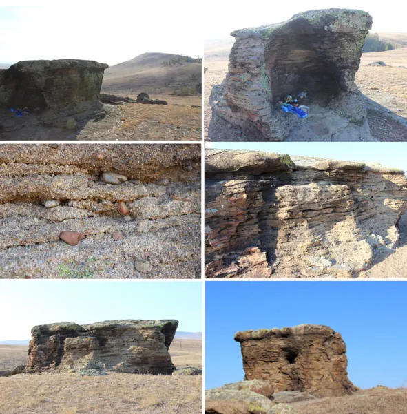 Среди Оронгойской степи, недалеко от аршана Ута Булаг, находится объект, имеющий вполне конкретные геометрические формы, напоминающие строение. Сложен он из спрессованного крупнозернистого песчаника, древних донных отложений, с включением небольшой гальки. Хорошо выражена слоистость.