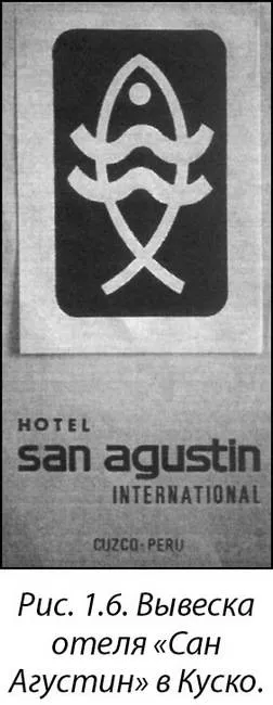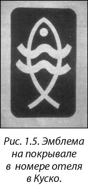 Но изображение догонов – из Африки, а мы находились в Перу, уставившись на очень похожее изображение. Это просто не укладывалось в голове. Поэтому мы спросили обслуживающий персонал отеля: «Что вы знаете об этой эмблеме?» Они знали немного. Большинство из них были испанского происхождения, и их не очень-то интересовали индейские легенды. Они не знали древних мифов о сотворении мира, поэтому не представляли себе, что бы это могло значить. Вот изображение этой эмблемы полностью (рис 1.6).