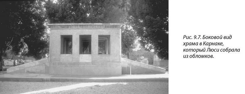 Чтобы получить представление о величине изображенного на рисунке маленького храма, представьте себе, что голова стоящего перед ним человека находится почти на уровне нижнего края его наклонного подоконника. До того как Люси нашла камни этого храма, они были всего лишь большой грудой обломков. Археологи знали, что они являются составными частями какого-то уникального архитектурного сооружения; вокруг ничего подобного не было. Но они не знали, как выглядело это здание, поэтому оставили камни в большой куче, надеясь, что кто-нибудь когда-нибудь это выяснит. Потом археологи нашли другую кучу не менее уникальных камней. И об этих камнях они тоже ничего не могли сказать. Что делать с грудой обломков? Трудно ведь сказать, как изначально выглядело здание, верно?