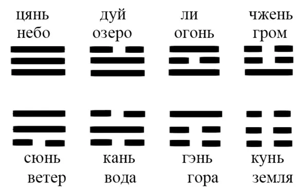 Набор линий, даже чисто внешне, может сказать о том, что значит та или иная триграмма.