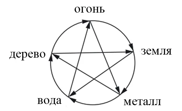 Дерево порождает Огонь, Огонь порождает Землю, Земля – Металл, Металл – Воду, Вода – снова Дерево.
