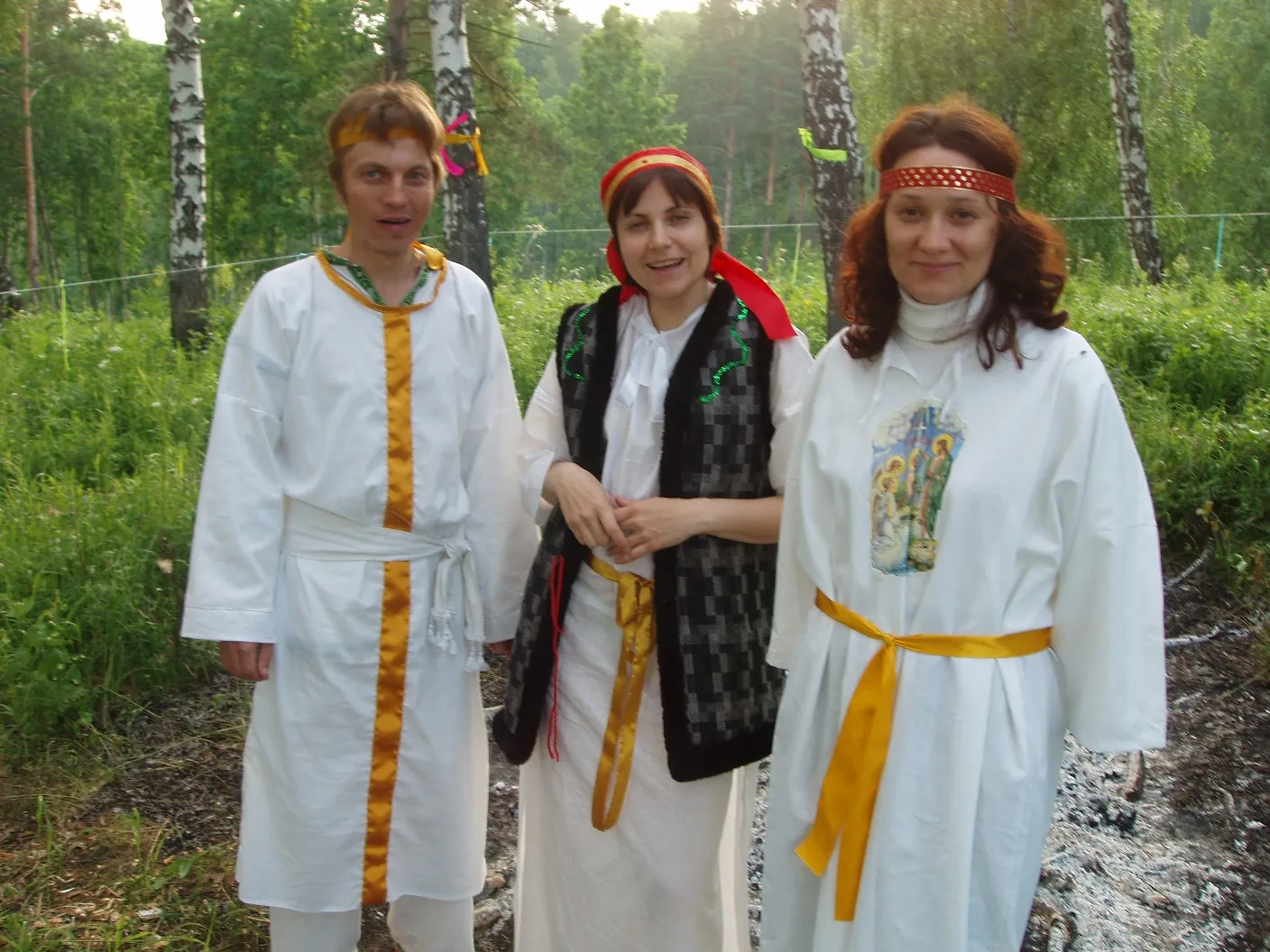 45. Алёна с Эльвирой и Владимиром во времена «старичков». Ритуал Купалы. 22 июня 2005 г.