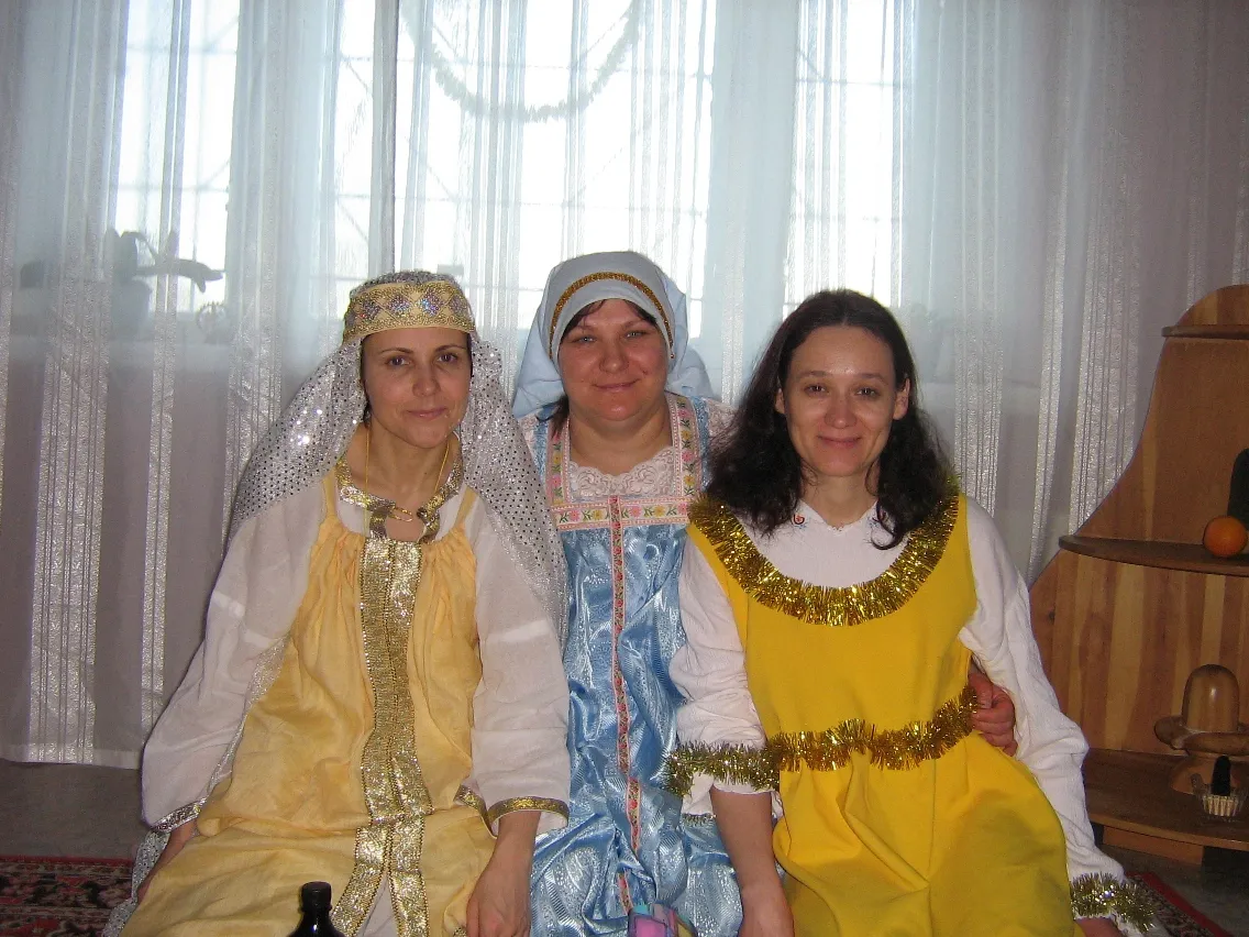 57. Наталья с Эльвирой и Алёной во времена «старичков». Занятие у Виталия дома на Коляду. 2006 г.