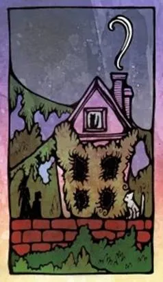 2. Представьте пространство за забором. Это может быть все что угодно. Дом, люди, памятные места, события все что в ваших воспоминаниях о своей жизни. Это некий образ прошедшего отрезка вашей жизни. Сформируйте и трансформируйте его в один единственный собирательный образ дома. Людей из прошлого (если только кто-то всплыл в воспоминаниях) распределите следующим образом. Если есть умершие поставьте вне дома, живых внутри дома. На самом верху дома, на чердаке в окне виднеется силуэт кошки. Этот силуэт сопоставим с кошкой на заборе.