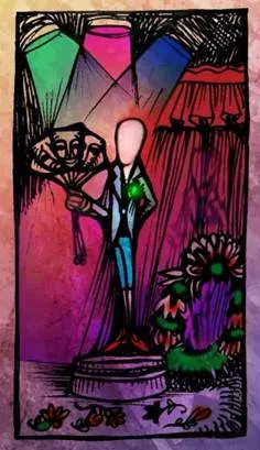 Высота пьедестала – насколько вы на виду. Количество цветов прожекторов – количество сфер, в которых вам приходится подстраиваться, внешние давление на жизнь. Количество масок – количество личин в жизни, чем больше, тем больше притворства и потеря себя настоящего. Если у вас лицо есть – вы человек в жизни такой какой есть. Если нет лица, то вам стоит вспомнить себя истинного. Цветы на сцене – негативные и позитивные реакции других людей на всех ваших аватаров и масок.