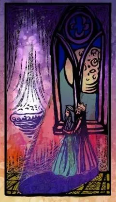 2. Поставьте себя на месте короля или королевы. Король и королева стоят в объятиях перед колыбелью с ребенком. Попробуйте почувствовать состояние этих родителей. Состояние тишины, гармонии и умиротворения.