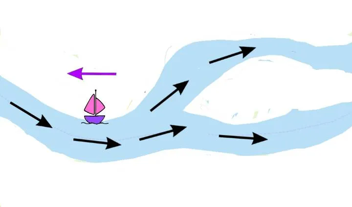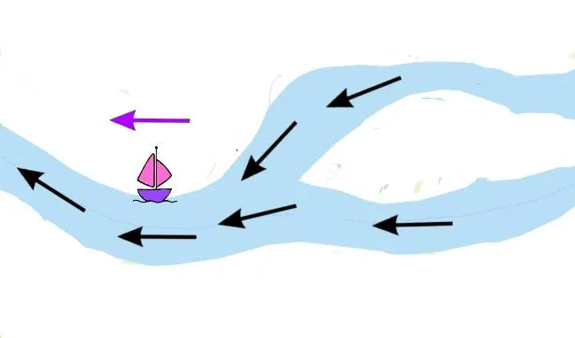 1 – Поток в сторону от развилки, плывете по течению от развилки – наиболее позитивный ответ.