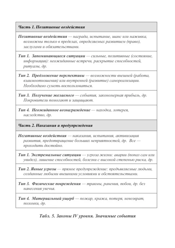 V уровень Духовных Законов – правила внутреннего поведения. Каждое конкретное воздействие – здесь. Оно, может быть, и не очень большое, но так как проявлений множество, в сумме они оказывают значительное влияние на человека (10—13% всех воздействий, которые получает человек).