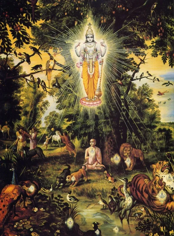 Второе, что мы должны знать о тех, с кем у нас есть отношения, – образ. Мы знаем и помним, как они выглядят. Но и этого недостаточно. Отношения означают еще – это третье – я знаю его качества. Какой он? Смелый? Умный? Интеллигентный? Очень добрый? Или, наоборот, жадный? Я знаю его. А откуда я это знаю? Либо я видел его в действии, либо кто-то мне рассказал о нем. Интересно, что отношения могут родиться, даже если я просто слушаю о человеке. Я его уже знаю, он меня – нет, но это отношения, такие, односторонние. Но Бог-то знает всех. Чтобы войти в отношения с Богом, только нам остается узнать о Нем. С Его стороны отношения не прекращались. Он дальше скажет: «Я пребываю в сердце каждого, и от Меня исходят память, знание и забвение» («Бхагавад-гита», 15.15). Бог нас знает, а вот мы Его забыли.