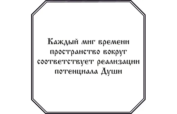 В осознанном состоянии человек формирует поток мыслей, а значит, свободно может отдать принадлежащий потенциал, ощутив при этом радость от содеянного, и выйти из пространства без него, но с благодарностью за пристроенный объем Души. За счет умения формировать пустота в Душе заменяется объемом благодарности.