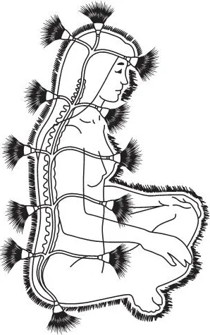 Первый изображает символическую взаимосвязь энергии с телом. На конце каждого энергетического луча – жизненное событие. Белый луч связан с позитивным – хорошим событием. Чёрный, невидимый на рисунке, связан с негативным – с плохим жизненным событием.