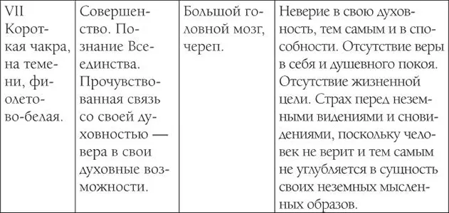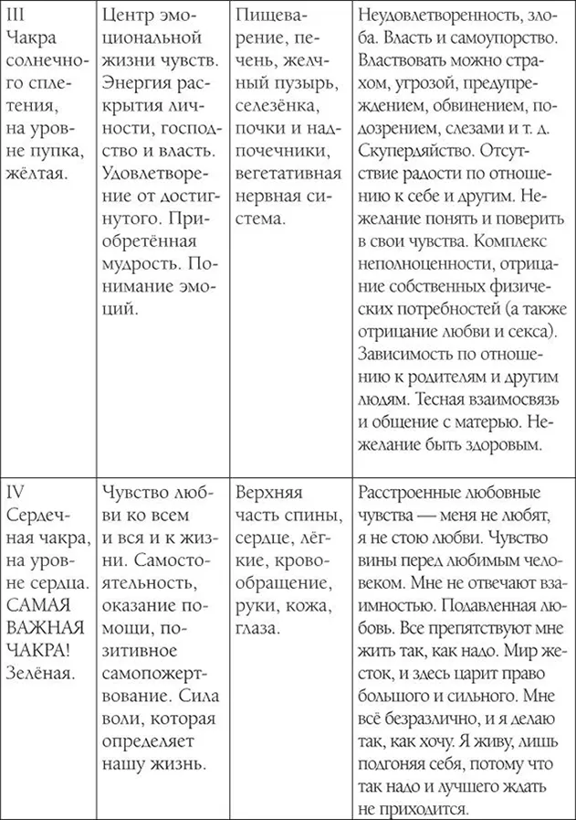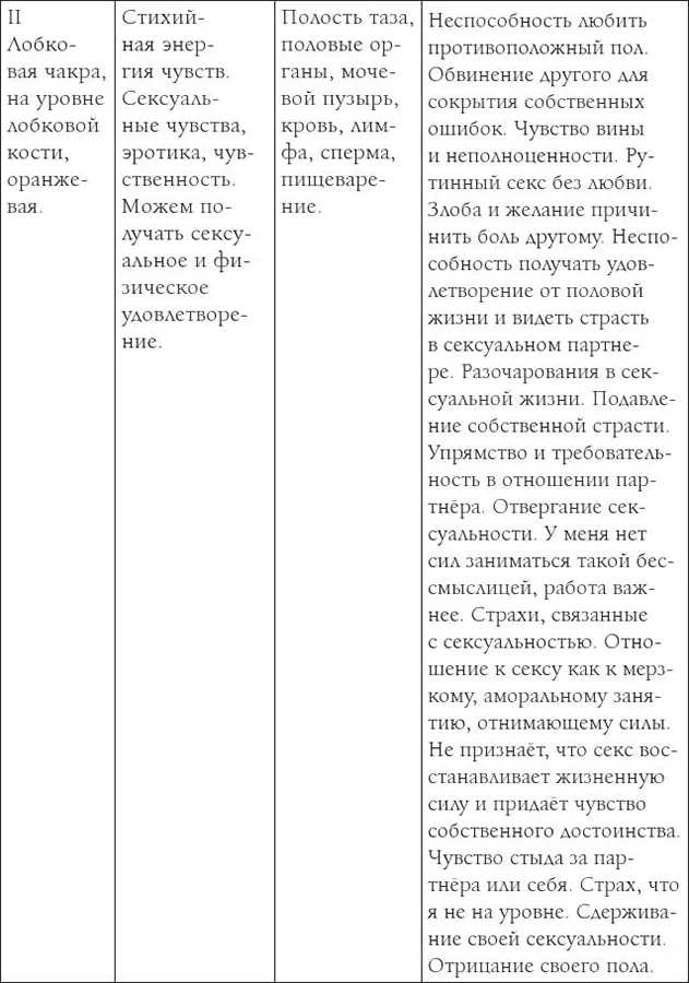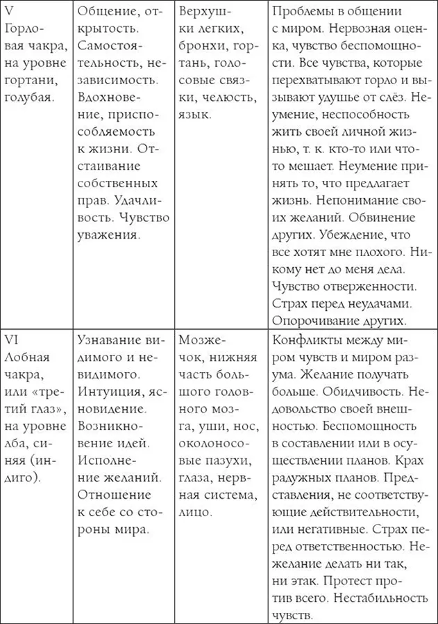 Приведённые на следующих таблицах данные собраны в ходе лечения жителей Эстонии. Проверьте, отвечает ли изложенное на таблицах Вашей болезни. Болезнь возникает тогда, когда чакра скована стрессом и происходит утечка энергии либо блокирован её приток.