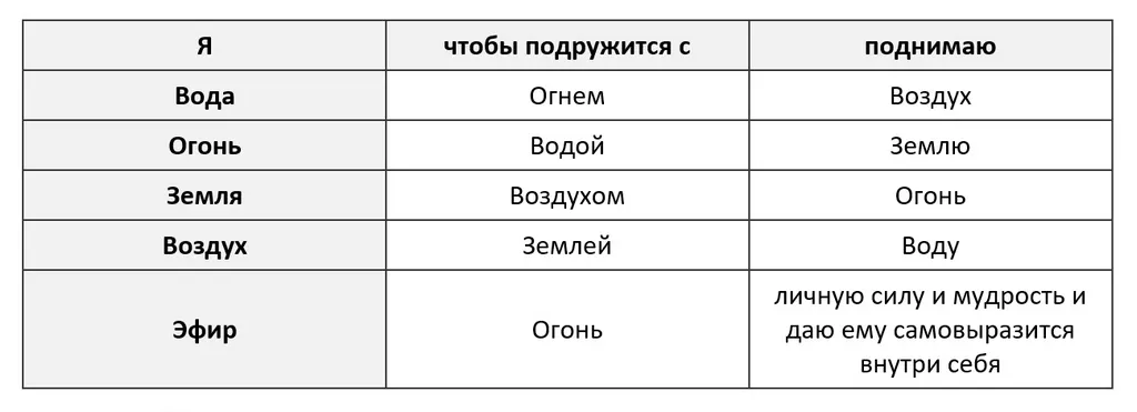 Возможно, проанализировав свой круг окружения, ты найдешь людей, которые находятся в состоянии «оппонента» для твоей родной стихии и поберешь к ним «ключик» по схеме ниже. Делай записи в дневнике, и через какое-то время они станут тебе приносить пользу.