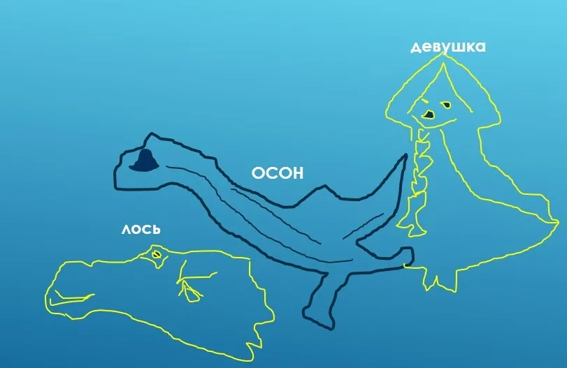 «В старину на Руси лосем называли созвездие Большой Медведицы» (Энциклопедия Кирилла и Мефодия). Ещё лось является символом Руси. Чуть правее и ниже этих изображений вы увидите «мокрого» воина в шлеме. Целый мир на рельефе планеты. Не удивляйтесь, если, кроме указанных мною образов, вы увидите другие. Так задумано высшими. Мне подсказали, что мелкие знаки – оковы, запутано специально. По подсказкам нашла то, что сказано в текстах. Чего не могу понять – в книгу не выношу.