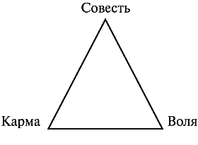Интересно рассмотреть частное отражение мистического треугольника Fabre d’Olivet, управляющее ходом событий в жизни души отдельного человека в течение определенного воплощения (инкарнации) этой души.