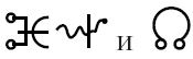 первый знак, подобие рака, поставлен вместо знака ♋ Рака. Этот зодиакальный знак астрологически есть дом Луны, планетное влияние которой проводит пассивное начало в пассивный же верхний зубец.