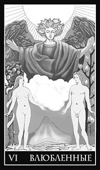Приятная карта, особенно в гаданиях о любви. В современных версиях она часто говорит о любви, глубоких отношениях. Но так было не всегда. Более старое название было связано с темой выбора. Традиция Золотой Зари увязала Аркан со знаком Близнецов, намекающим на широту возможных контактов. Идея о необходимости выбора восходит к иконографии Марсельской колоды, на которой изображен молодой человек между двух женщин – блондинки и брюнетки, пытающийся решить – какая из них ему больше подойдет. Для сознания, противопоставлявшего свет и тьму, светлые волосы выглядели воплощением духовной чистоты. Темные же волосы и глаза выглядели более земными, более материальными и соблазнительными. Вверху купидон накладывает стрелу на тетиву, ожидая результата выбора. Стрела на карте не так безопасна, как может казаться, и напоминает нам о том, что древние богини часто были вооружены.