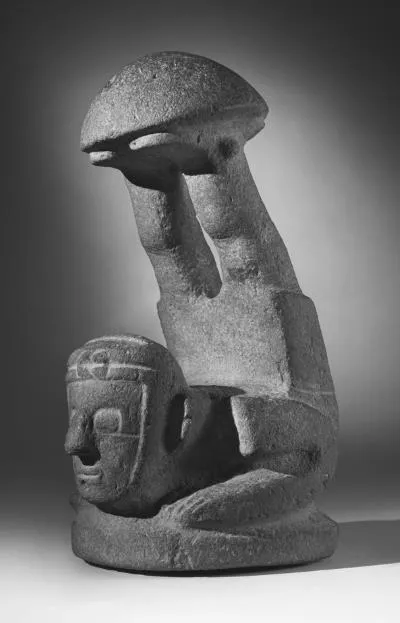 Нью-Йоркский банкир и миколог Гордон Уоссон с доиспанской статуей гриба в своем кабинете (слева); Станислав Гроф посещает Уоссона в 1973 году в его доме в Данбери, Коннектикут (справа).
