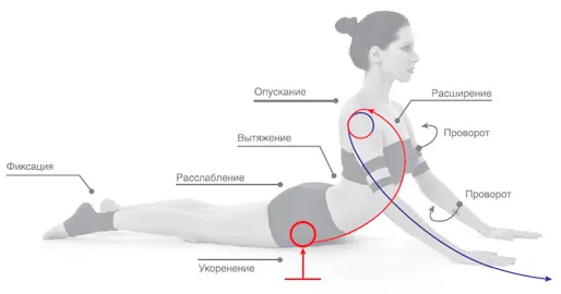Положите ладони на Землю, под плечевыми суставами. Разверните их внутрь так, чтобы пальцы обеих рук смотрели друг на друга. Опираясь на ладони, приподнимите корпус и подтянитесь вперед, «вытаскивая» ребра из-под себя и вытягиваясь как можно дальше от таза. Освободив этим движением ребра и верхнюю часть живота, вернитесь в исходное положение лежа. Поставьте параллельные друг другу ладони чуть дальше впереди себя, на расстоянии длины одной ладони от начального положения. Раскройте большие пальцы рук так, чтобы они смотрели друг на друга, при этом кисти рук чуть заверните внутрь. Надавите большими пальцами рук на Землю.