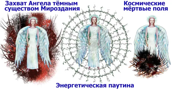Одной из возможных болезней Ангела человека может быть большое количество привязок из других тёмных миров. Трудно сказать, почему и как это происходит, но иногда Ангелы оказываются во власти тёмных существ Мироздания. Тёмные существа Мироздания могут быть настолько разнообразны, что полноценно описывать их нет никакой возможности, да и достаточно сложно, потому что, с одной стороны, наше сознание не готово в полном объёме рассказывать о них, с другой – в этом нет и необходимости, потому что это пустая трата золотого земного времени, отведённого человеку. Так как ничего случайного в этом мире не бывает, то можно сказать, что в любом случае, если у Ангела человека такие загрязнения существуют, то существует и задача его освобождения от этих проблем, так как эти привязки часто ощущаются на физическом теле человека, воздействуя на его биологию в виде проявления болей. То, что привязки Ангела переносятся на физическое тело – это работа Закона Причинно-Следственных Связей для нас, людей. Осветлить эти привязки необходимо даже только потому, что если этого не сделать в этой жизни, проблема перейдёт в следующую. Наверное, незачем тащить весь этот космический груз, в общем-то, тяжёлый, потому что космическая карма, частью которой и являются данные проблемы Ангела, бывает иногда достаточно жёсткой, и потребует много человеческих сил и страданий для её отработки.