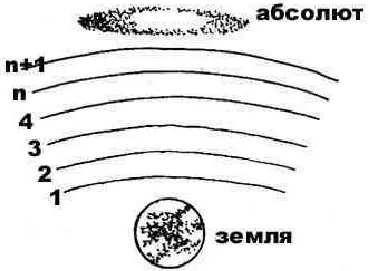 На рисунке условно указаны уровни Информационных Полей согласно их информационной значимости. Чем выше градиент поля, тем выше его информационный уровень. Самый нижний – уровень информации о нашей повседневной жизни, уровень планеты Земля: проснулся, позавтракал, пошел на работу… Второй – уровень нашей астрологической натальности, или информационный уровень Солнечной системы: родился, женился, пошел служить в армию… Третий уровень – галактический, к примеру, хранит информацию об истории целой страны, этноса. И так далее… Через «n+1» уровней ИП мы выходим на Абсолют.